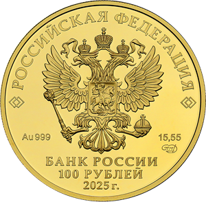 На лицевой стороне монет расположено рельефное изображение Государственного герба Российской Федерации, имеются надписи: «РОССИЙСКАЯ ФЕДЕРАЦИЯ», «БАНК РОССИИ», номинал монет «3 РУБЛЯ», «100 РУБЛЕЙ», дата «2025 г.», обозначение металла по Периодической системе элементов