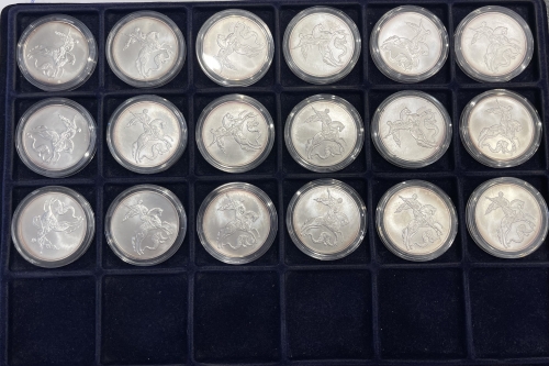 Набор из 18 серебряных монет "Георгий Победоносец" 3 рубля 2009-2010 гг.