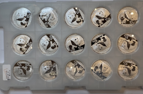 • Серебряная Китайская Панда - наиболее популярная инвестиционная монета. Первые монеты Китайская Панда были отчеканены в 1983 году. В период с 1983 года по 1985 год Панда чеканилась в качестве пруф, вес составлял 27 граммов серебра 900 пробы. Тираж в эти годы ограничивался 10000 штук. С 1986 года по 2015 год серебряная монета Панда содержит в себе одну тройскую унцию чистого (999 проба) серебра. В 2016 году производитель отказался от тройского стандарта и начал выпускать панды весом 30 граммов.