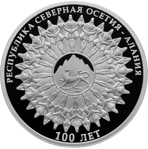 Серебряная монета 3 рубля " 100-летие образования Республики Северная Осетия – Алания" 2024г, 31,1г.,ПРУФ