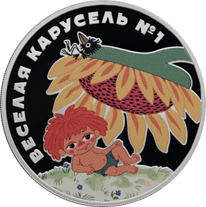 Серебряная монета 3 рубля "Веселая карусель № 1" 2022г., 31,1 г. 925 проба, ПРУФ