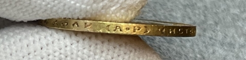 В центре профильный портрет влево императора Николая II. Слева от портрета надпись «Б.М. НИКОЛАЙ II ИМПЕРАТОРЪ», справа - «И САМОДЕРЖЕЦЪ ВСЕРОСС.». По окружности канта имеются рельефные элементы, выполненные в виде зубцов.