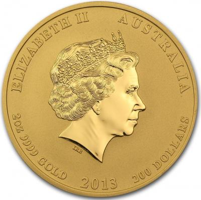 Золотая монета 200 долларов "Лунар-2" Год Змеи 2013 год 2 унции, 62,2г.