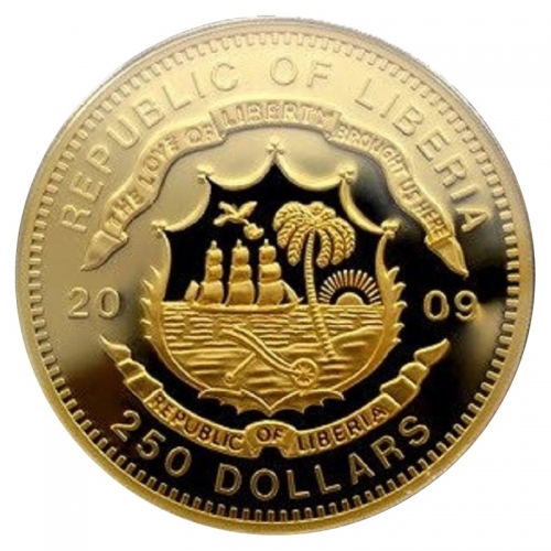 Золотая монета 250 долларов "Апостол Петр" 2009 года, Либерия, Au9999, 155.5 г