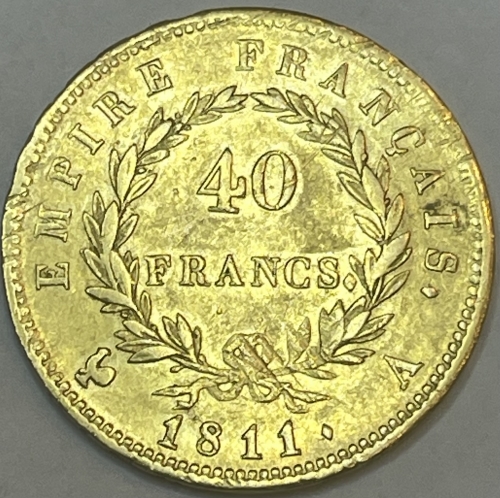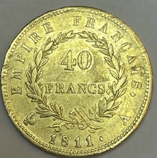 Вы всегда можете купить или продать, а также узнать текущую стоимость монеты - 'Золотая монета 40 франков 1811г Наполеон I' в г. (). У нас Вы получите полную и необходимую консультация от квалифицированных специалистов и профессионалов, работающих на рынке инвестиций в драгметаллы уже долгое время. Мы стараемся предложить нашим клиентам лучшие цены выкупа и продажи на рынке (с минимальным спредом), а также гарантируем конфиденциальность всех проводимых сделок.