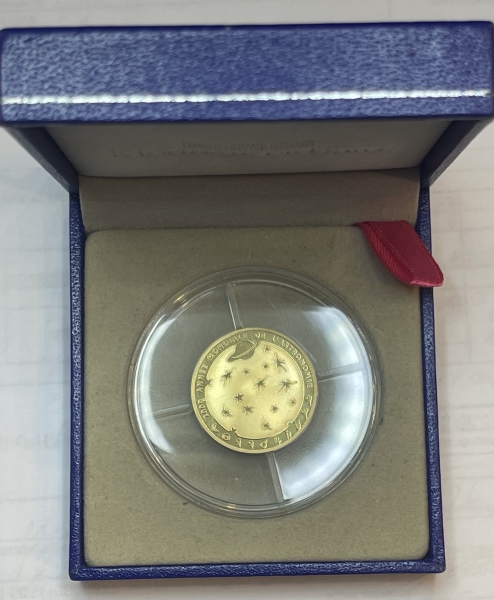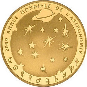 Золотая монета 50 евро "Международный год астрономии" 2009 год, Франция, Au 920, 8,48г.