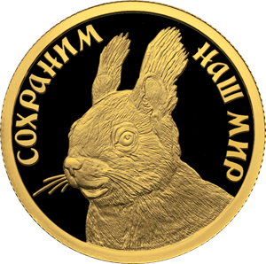 Золотая монета 50 рублей "Белка обыкновенная" 7,78г., Au 999, Proof, 2023г.
