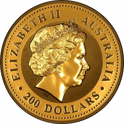 • Аверс: Изображение портрета королевы Елизаветы II. Сверху надпись ELIZABETH II  — Елизавета II, AUSTRALIA — Австралия и год выпуска монеты. Внизу номинал монеты 100 DOLLARS. С нижней стороны портрета имеется надпись «IRB», обозначающая инициалы автора изображённого портрета – Иена Рэнка-Бродли.
