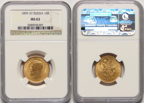 Вы всегда можете купить или продать, а также узнать текущую стоимость монеты - 'Золотая монета Николая II 10 рублей 1899 год состояние MS 63' в г. (). У нас Вы получите полную и необходимую консультация от квалифицированных специалистов и профессионалов, работающих на рынке инвестиций в драгметаллы уже долгое время. Мы стараемся предложить нашим клиентам лучшие цены выкупа и продажи на рынке (с минимальным спредом), а также гарантируем конфиденциальность всех проводимых сделок.