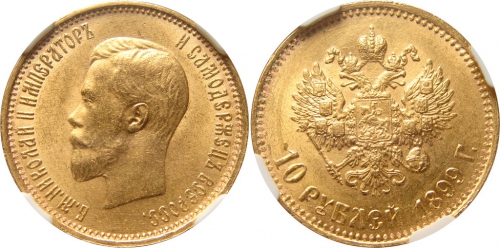 Золотая монета Николая II 10 рублей 1899 год состояние MS 63